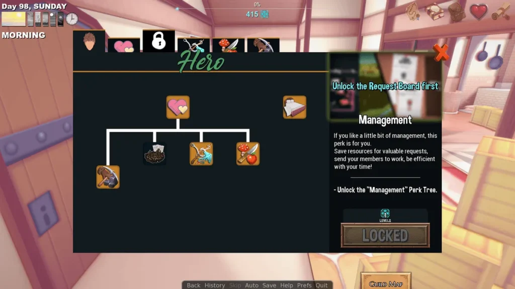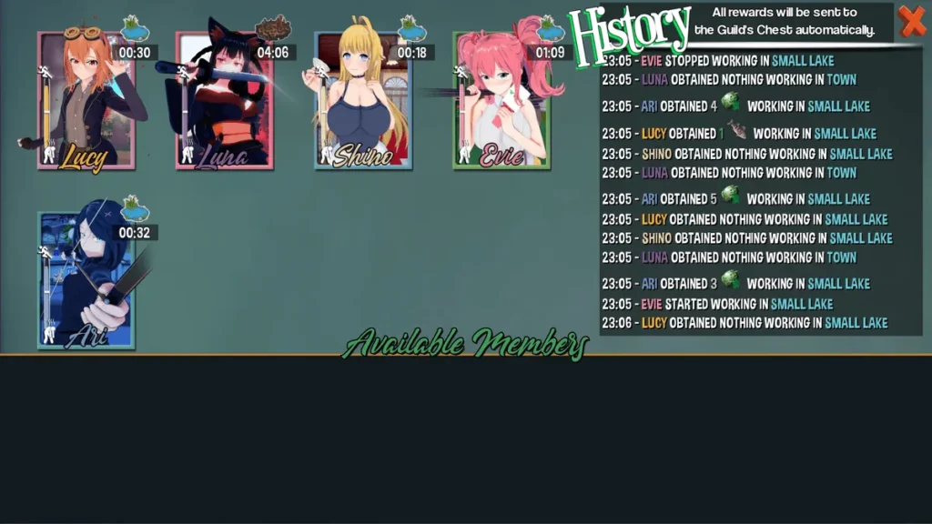 The core Hero’s Harem Guild gameplay loop revolves around a few key activities. You’ll talk to your guild members daily to raise their affection, which is crucial for unlocking new scenes and abilities. You’ll also need to gather resources—this is where the “grind” comes in, but it’s surprisingly tolerable and often peaceful.